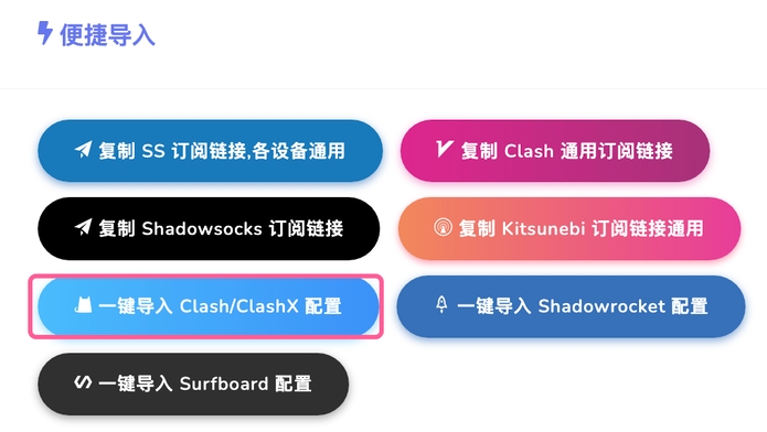 其他客户端可通过在线订阅转换链接自行转换,喜欢折腾的可以通过 教程 自行搭建