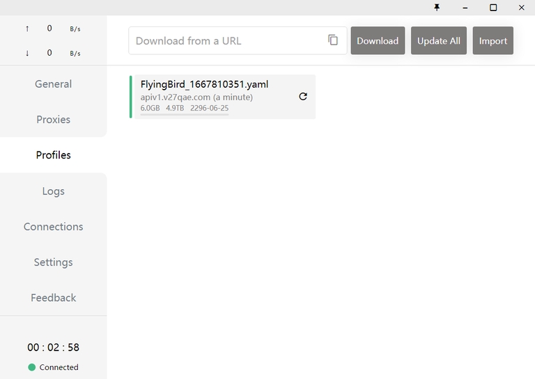 https://qyoo.aibvs.cn/api/v1/client/subscribe?token=d1238234772e17cc53229bcbb74980edClash 订阅地址: