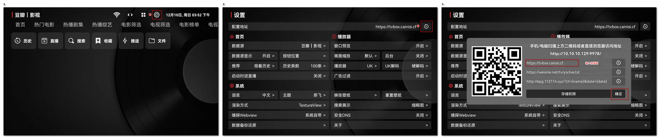 TVBox首页 TVBOX配置地址:首先打开右上角的